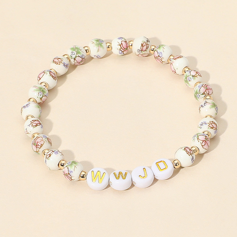 WWJD Floral Bracelet - is backordered and will ship as soon as it is back in stock.