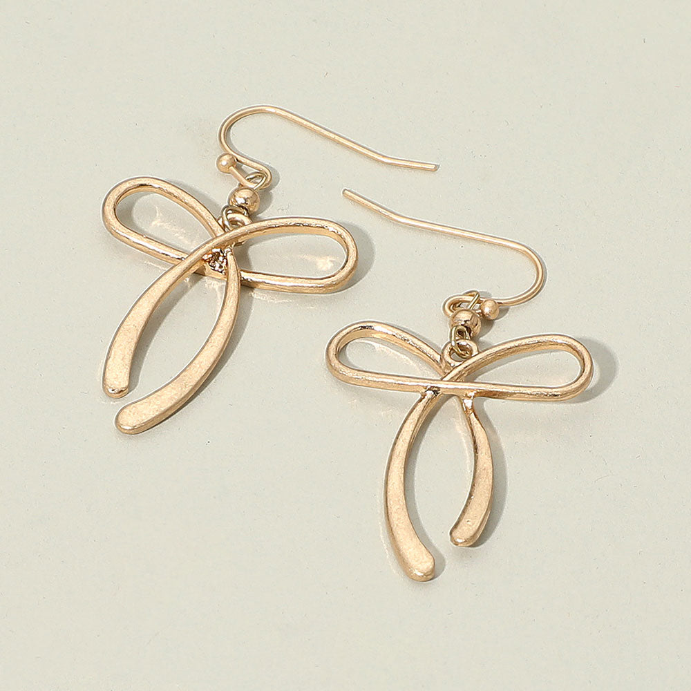Gold Metal Bow Dangle Earrings