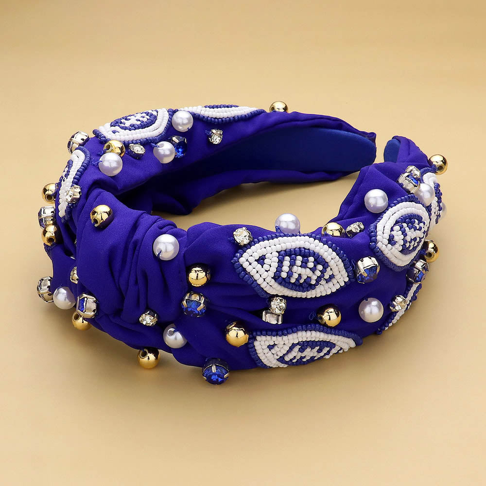 Elevate your game day style with this Football Beaded Headband, meticulously crafted for a refined yet spirited look. Its intricate beadwork captures the essence of the sport while providing a comfortable, secure fit. Perfect for fans who appreciate subtle, elegant accessories that celebrate their passion with grace.