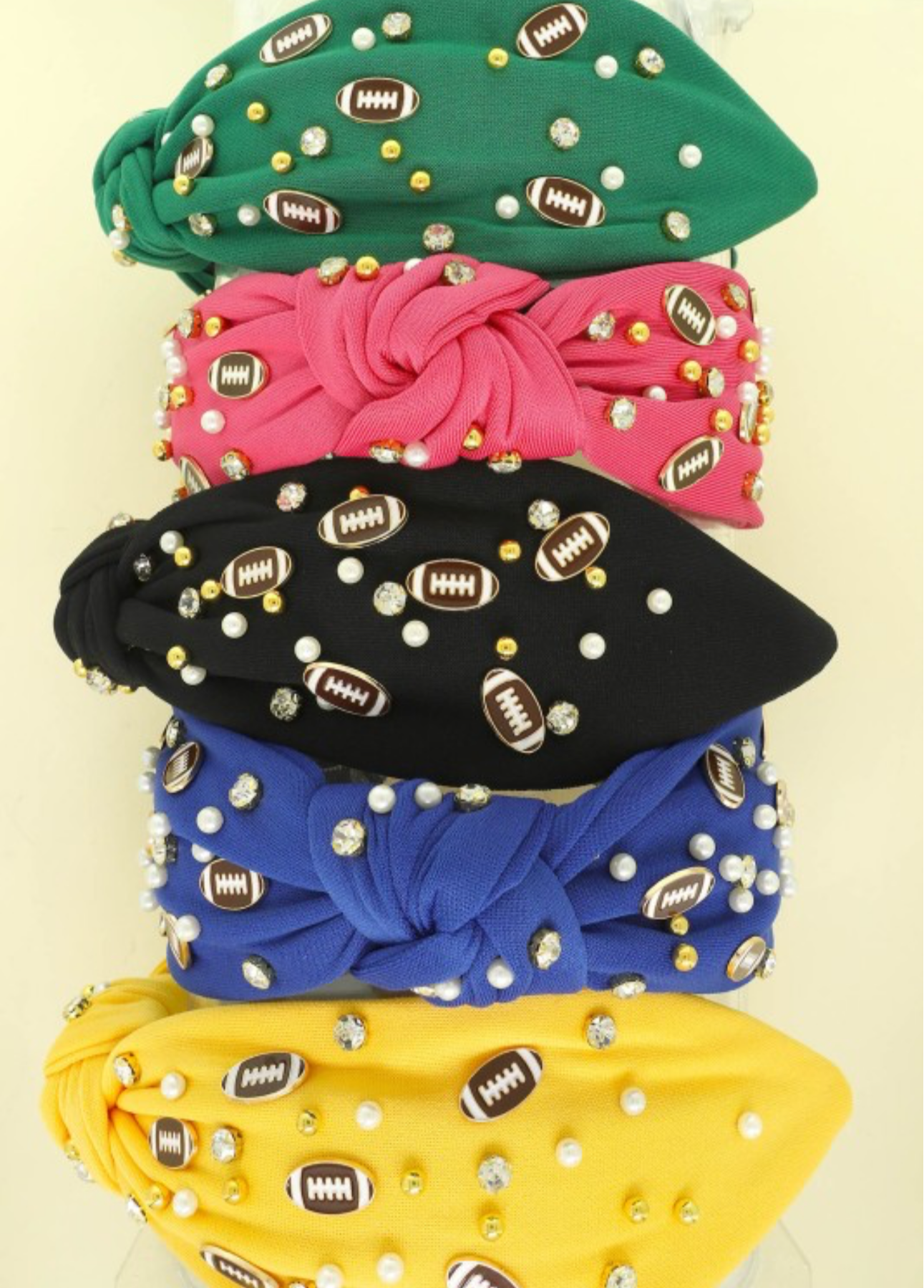 Elevate your game day style with this Football Beaded Headband, meticulously crafted for a refined yet spirited look. Its intricate beadwork captures the essence of the sport while providing a comfortable, secure fit. Perfect for fans who appreciate subtle, elegant accessories that celebrate their passion with grace.