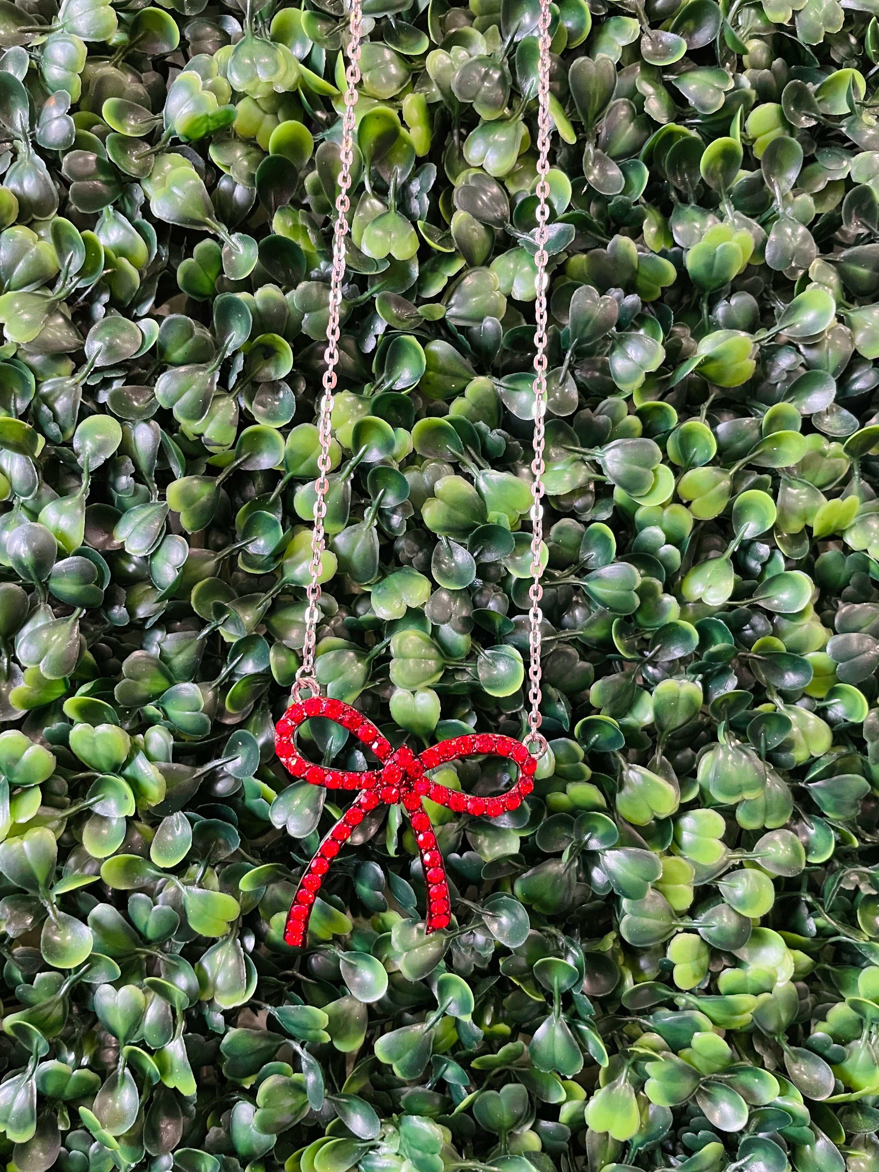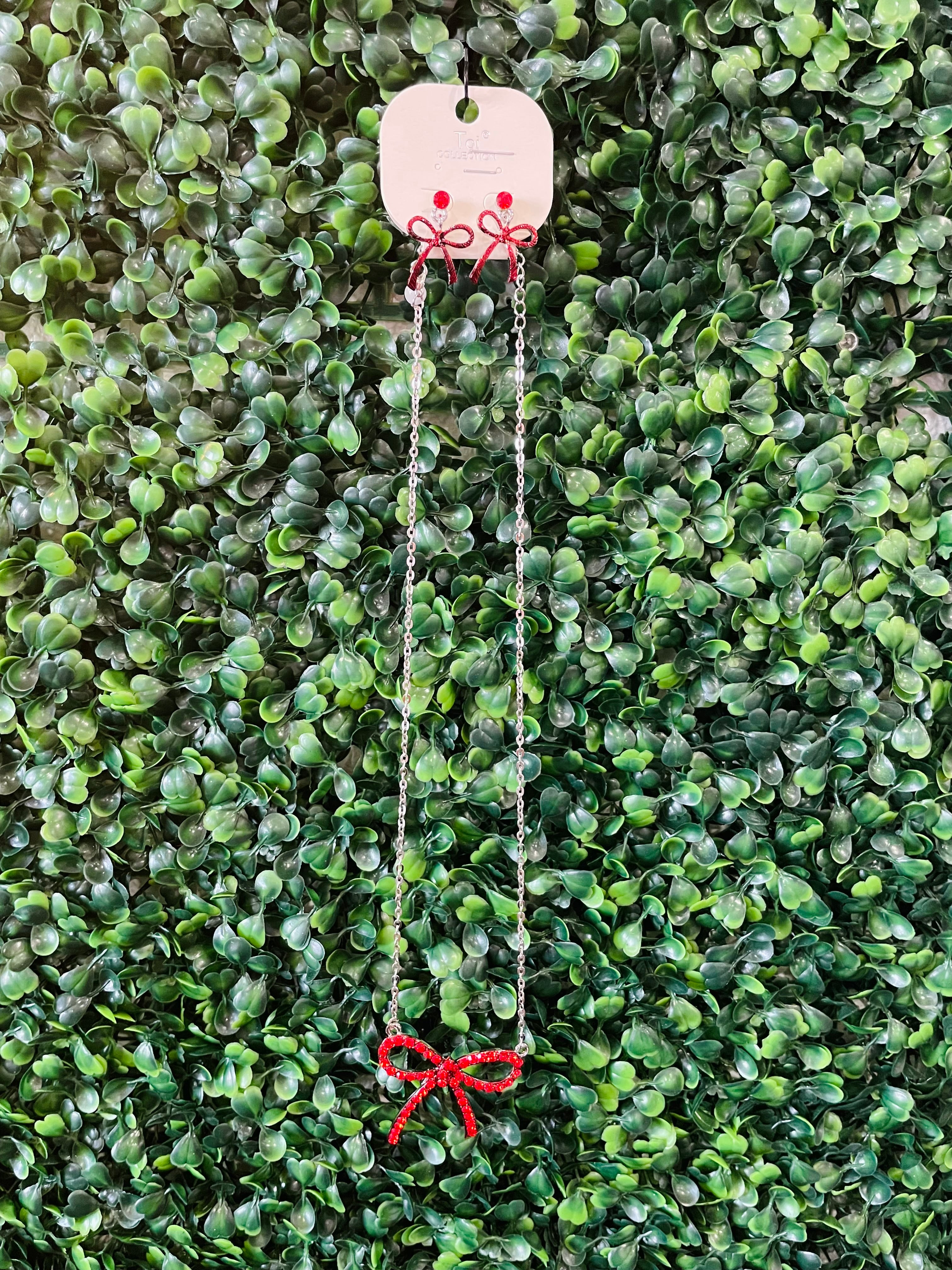 Red Gem Bow necklace and earring set - is backordered and will ship as soon as it is back in stock.