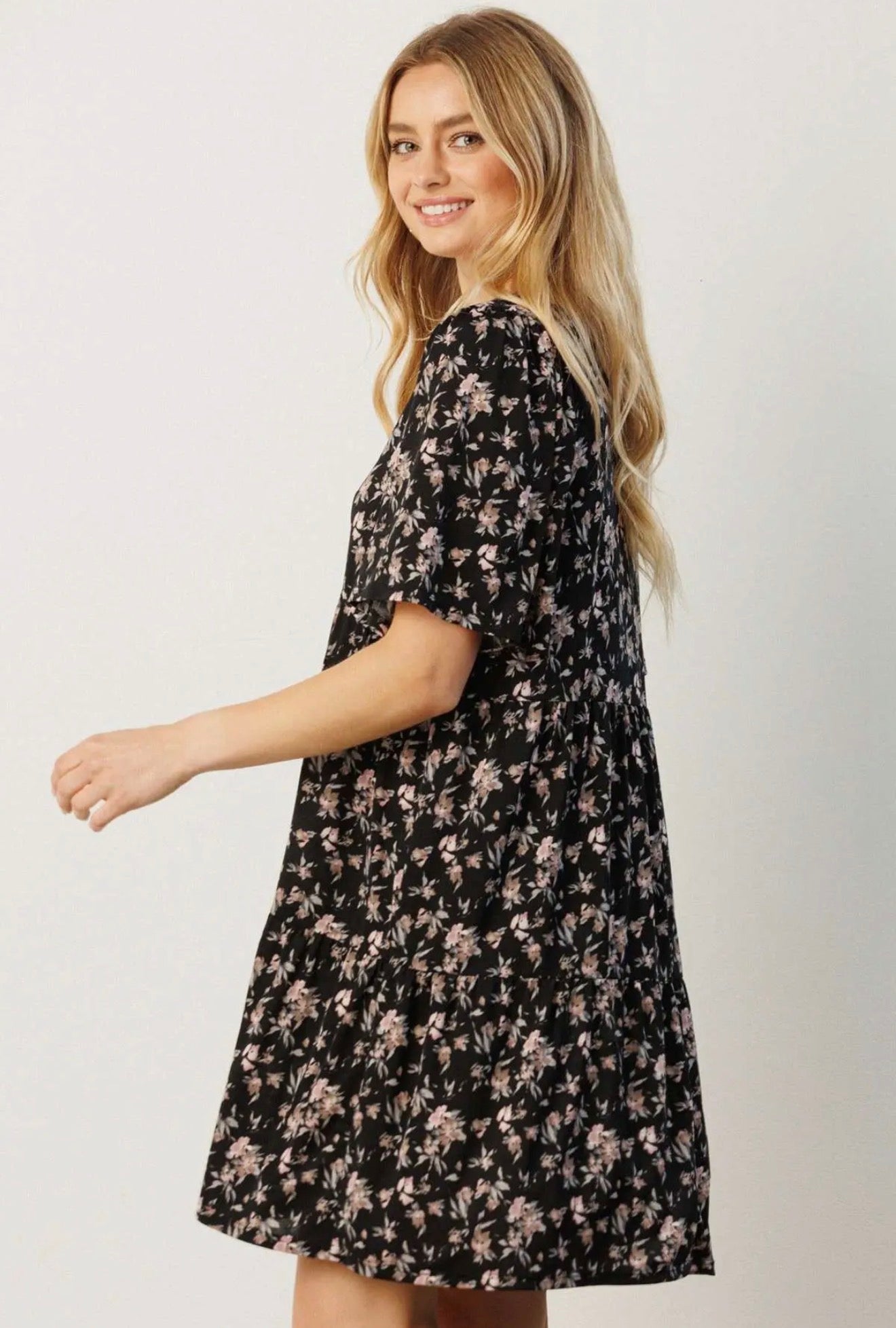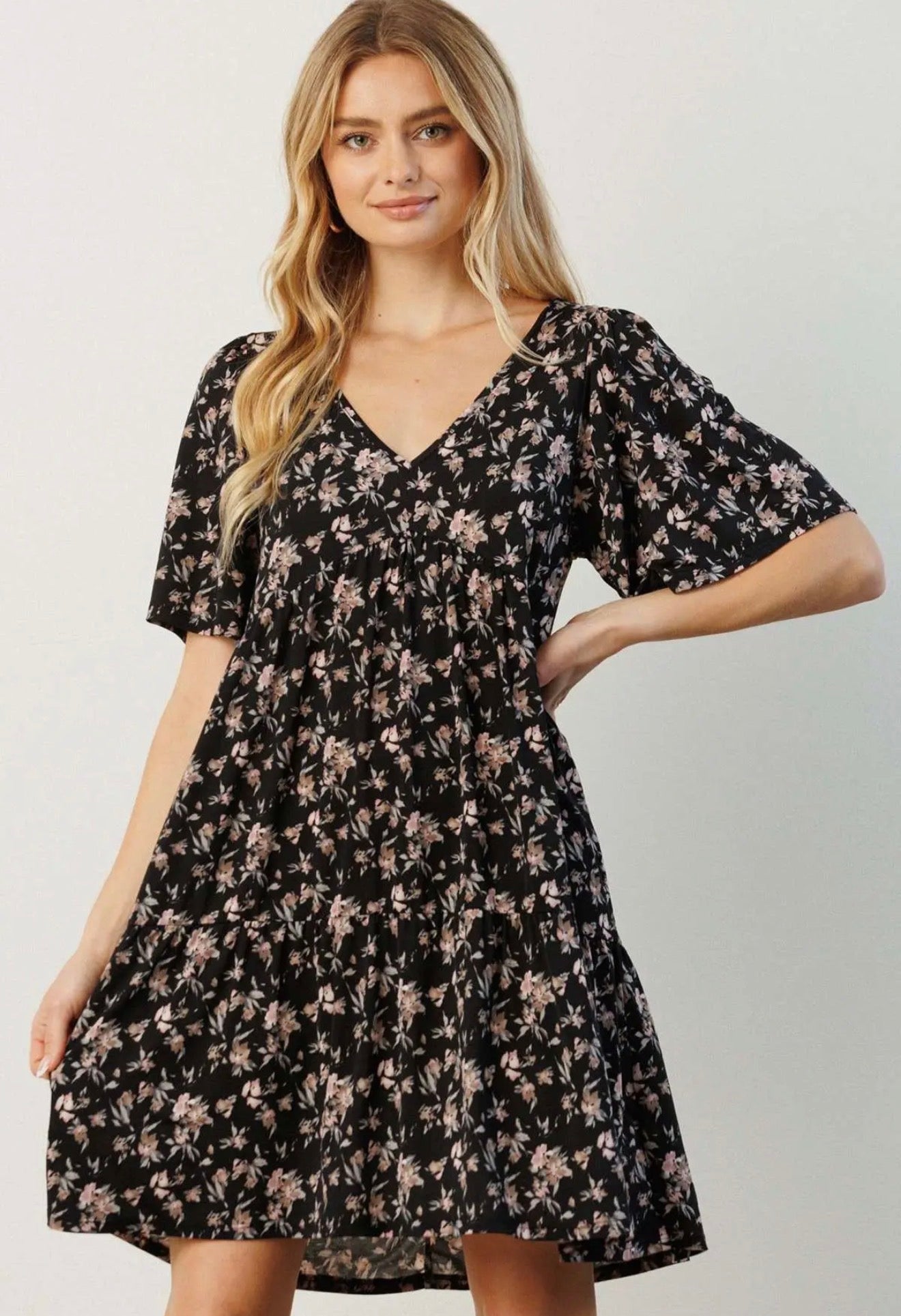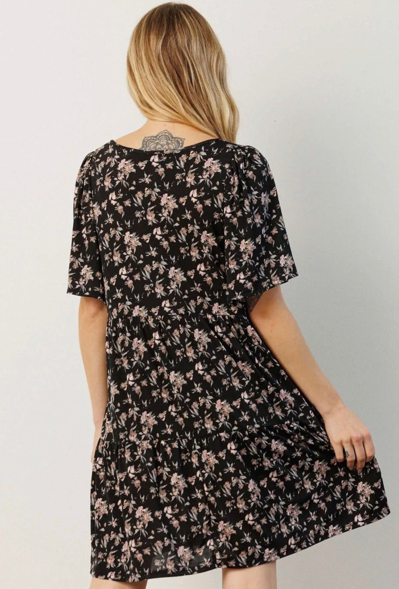Embrace your inner beauty with our Black Floral Mini Dress! This cute, floral design captures the essence of spring while keeping you effortlessly stylish. Perfect for any occasion, it celebrates your personality and makes you feel vibrant and confident. Step out and dazzle!