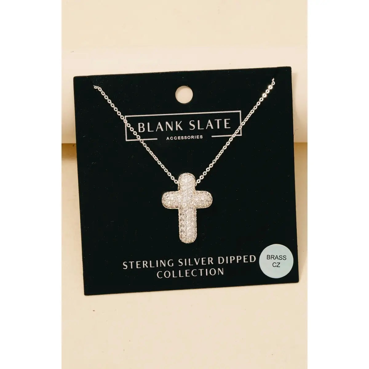 Upgrade your necklace game, this necklace brings a one-of-a-kind gold dipped cubic zirconia pave bubble cross pendant design. A must-have necklace that adds a unique flair to any look. Available in G and S. This item is sold in packs of 1. This necklace approximately measures:
