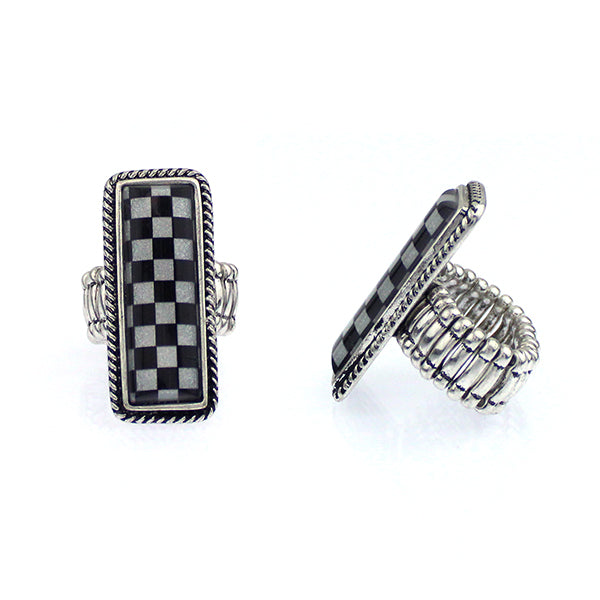Silvertone checkered Ring - is backordered and will ship as soon as it is back in stock.