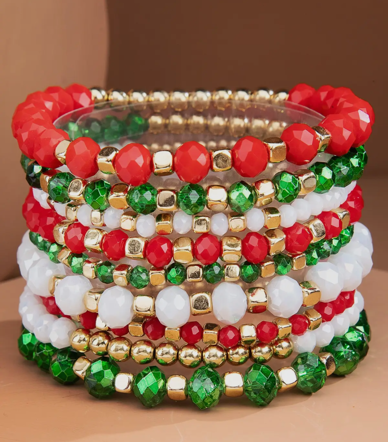 Make your holidays sparkle with our Holiday Stretch Stackable Bracelet Set. This set features multiple bracelets that can be stacked for a stylish and festive look. Add some festive fun to your accessory collection and elevate your holiday outfits with this must-have set!