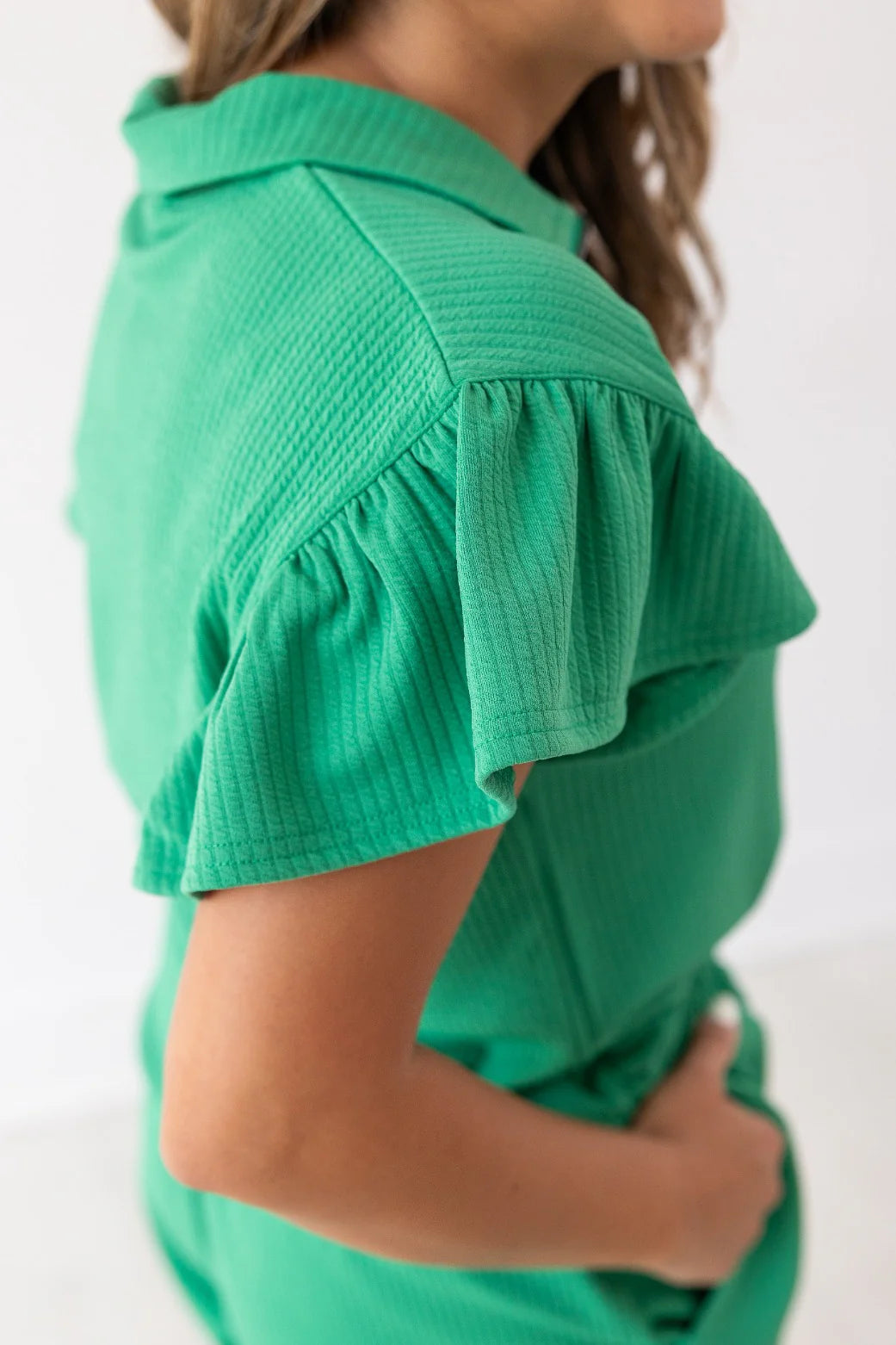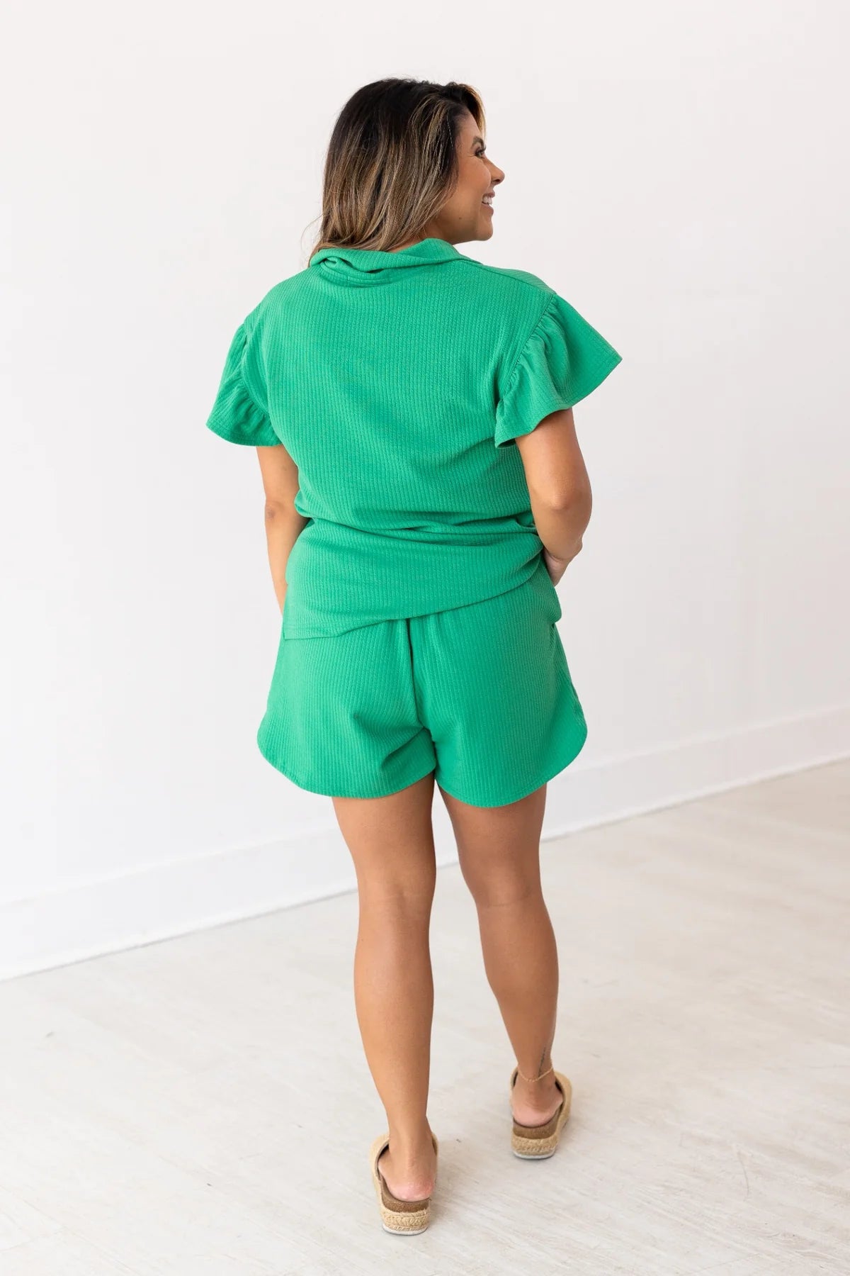 Made from a soft, high-stretch fabric, this piece drapes effortlessly offering coverage where you want it and flexibility where you need it. The flutter sleeves provide a graceful, flattering touch to the arms, while the relaxed fit smooths over the back without clinging to any areas.