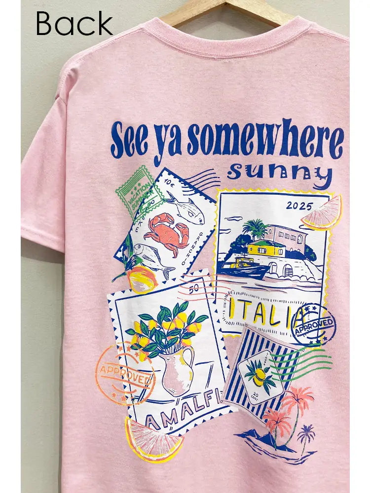 Short sleeve garment-dyed "see ya somewhere sunny" It