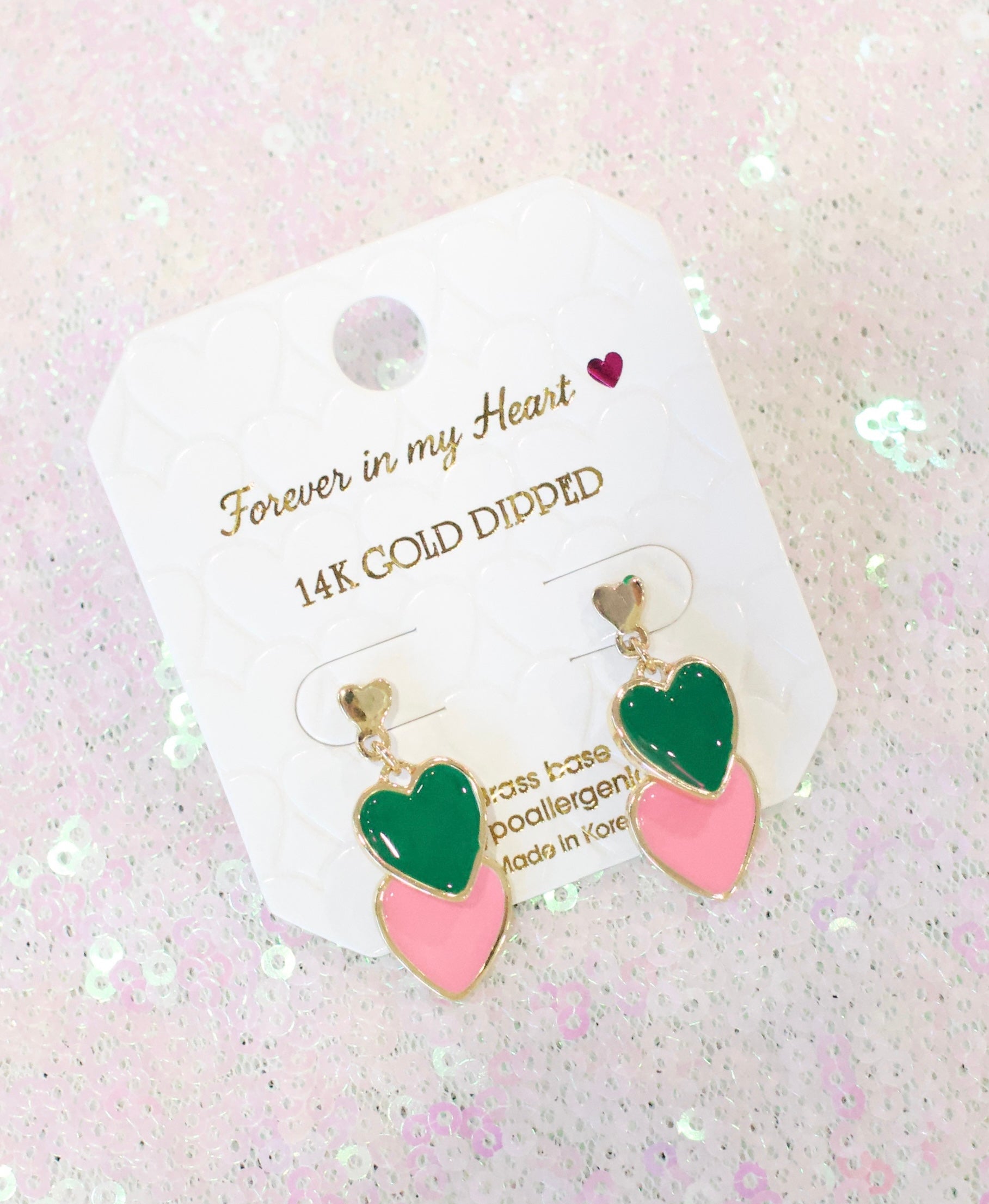 • Playful and chic, these double heart enamel drop earrings feature a vibrant layered design that adds charm and personality to any outfit. Lightweight yet eye-catching, they are perfect for everyday wear or as a fun statement piece for special occasions.