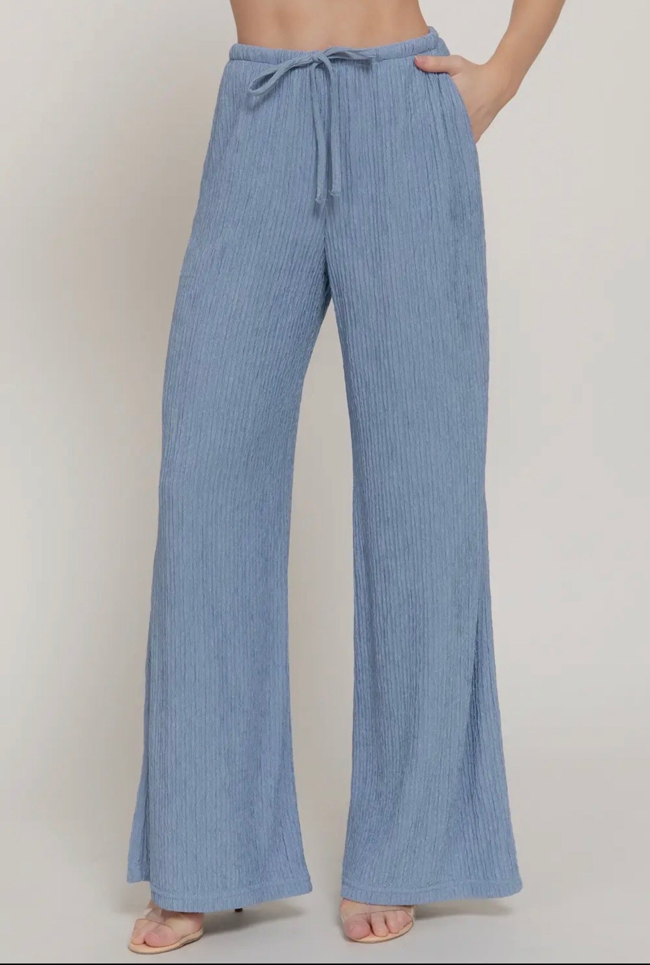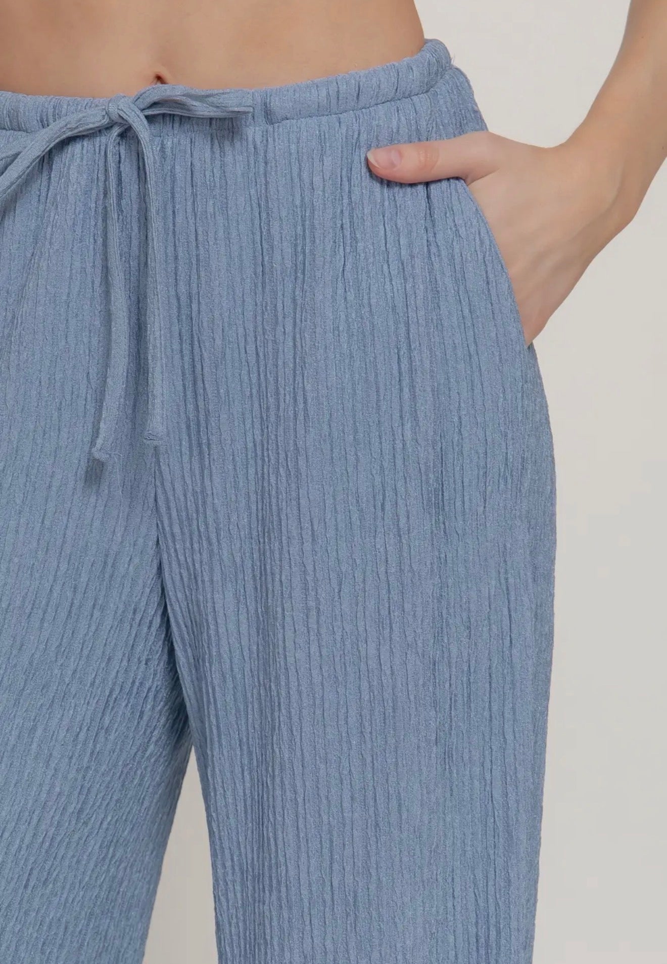 Spring Blue Crinkle Knit Pants - is backordered and will ship as soon as it is back in stock.