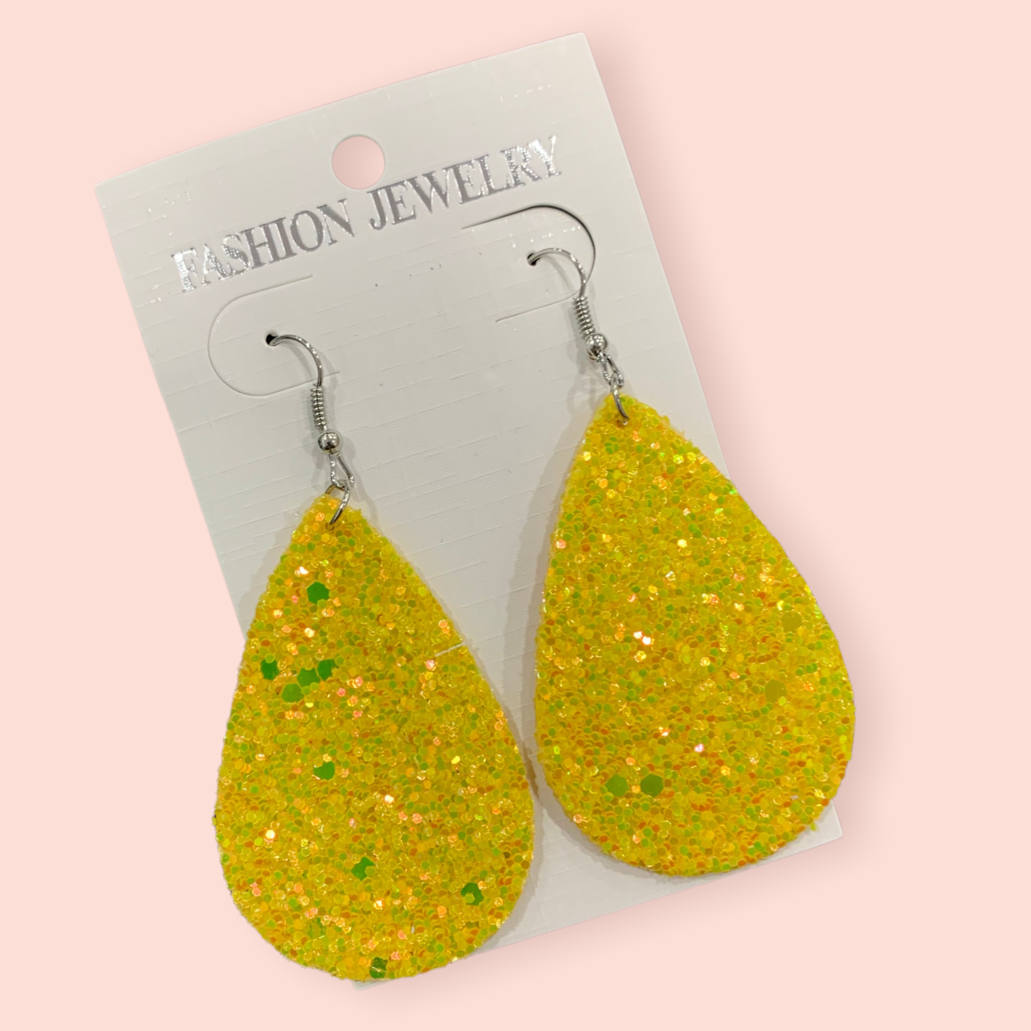Yellow Glitter Tag Earrings - is backordered and will ship as soon as it is back in stock.